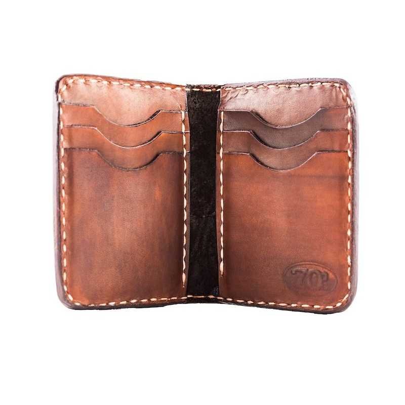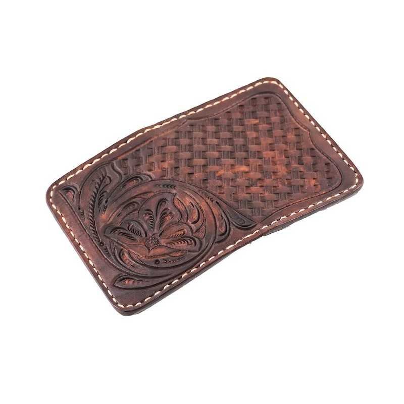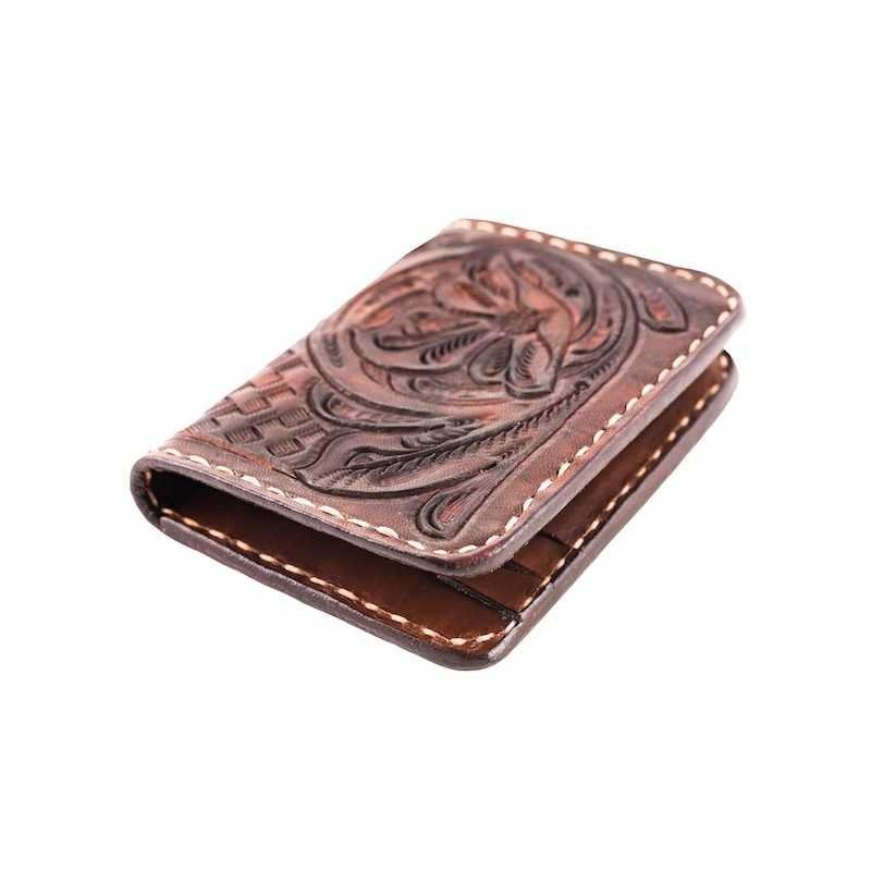 70’s Credit Card Holder Wallet Brown Engraved