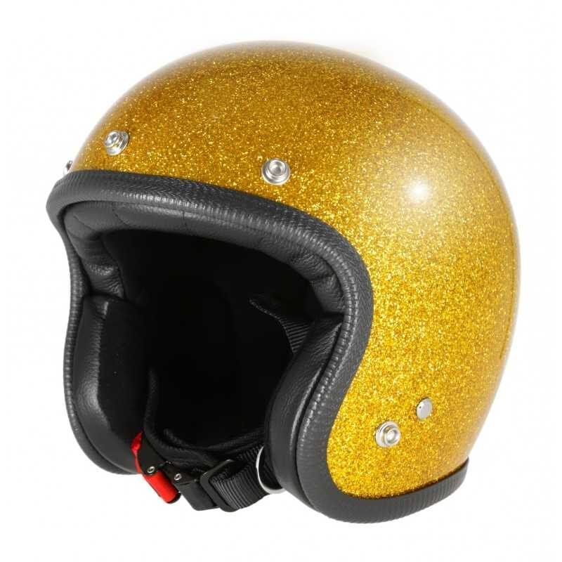 70’s Helmets Metal Flake Gold designed in Italy, this 3/4 helmet features a Vintage profile.
