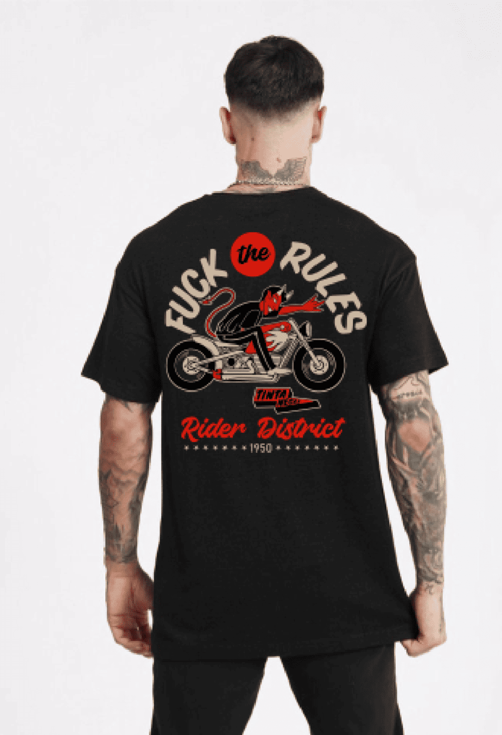 Biker T-Shirt “Fuck The Rules” – Rider District x Tinta Negra Tattoo Estudio